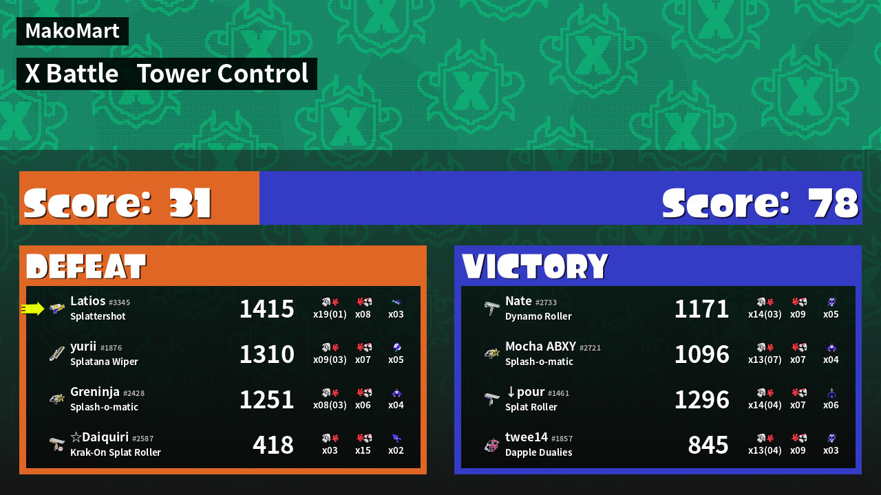 | Mode | Tower Control - X Battle | ||