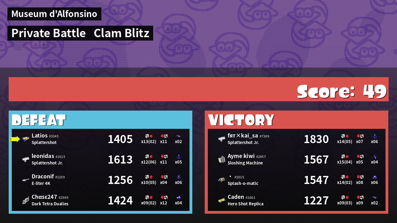 Kills / Deaths | 11 + 2 / 11 = Kill Ratio: 1.00 | ||