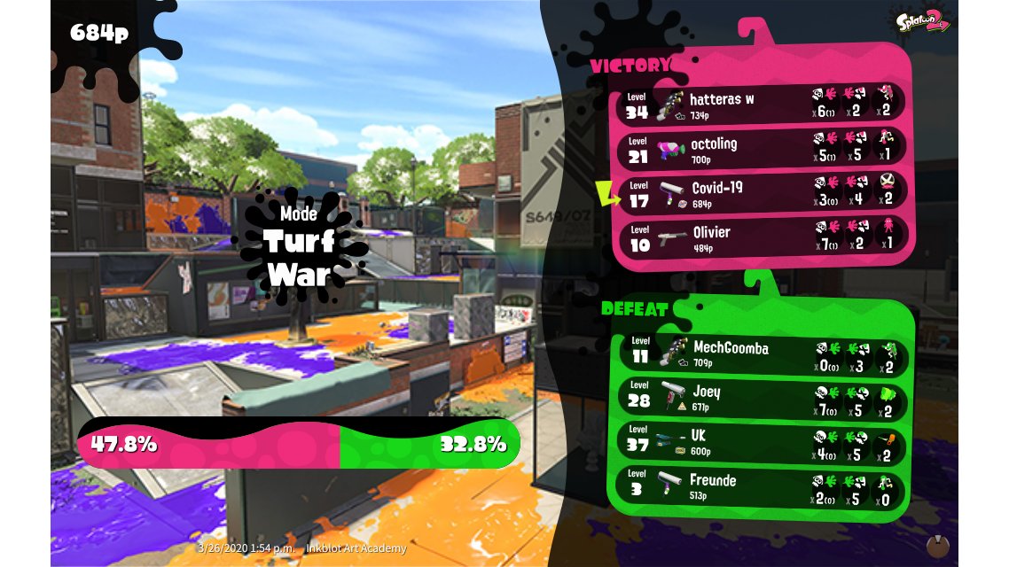 | Mode | Turf War - Regular Battle | |||||||||||||||||||||||||||||||||||||