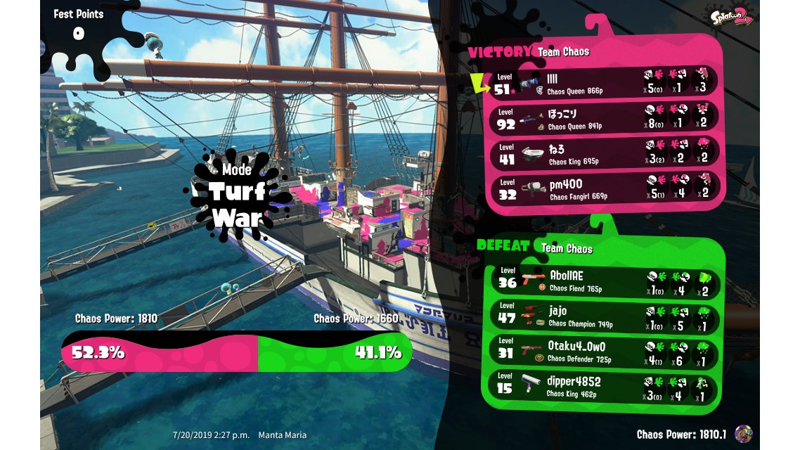 | Splatfest Title | Chaos Queen → Chaos Queen | |||||||||||||||||||||||||||||||||||||