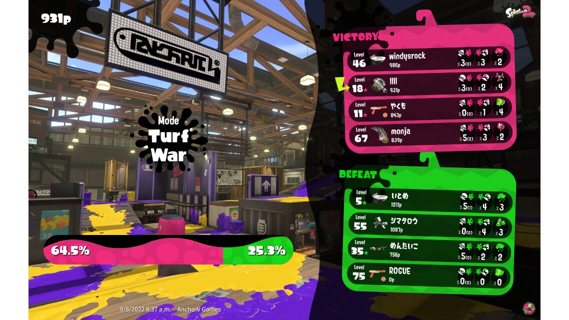 | Mode | Turf War - Regular Battle | |||||||||||||||||||||||||||||||||||||||||||