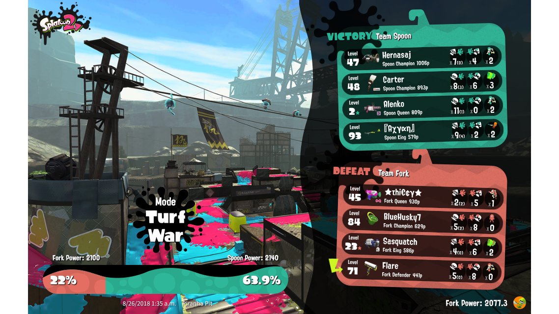 | Splatfest Power | 2,077.3 | ||||||||||||||||||||||||||||