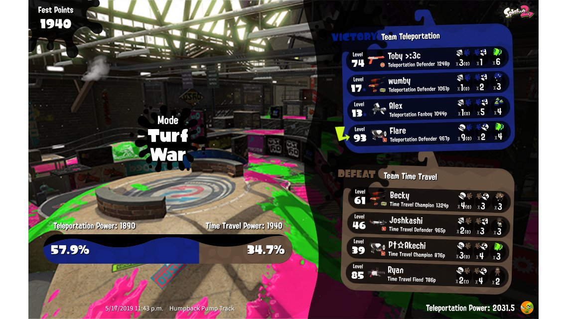 | Splatfest Title | Teleportation Defender 90 → Teleportation Defender 180 | ||||||||||||||||||||||||||||