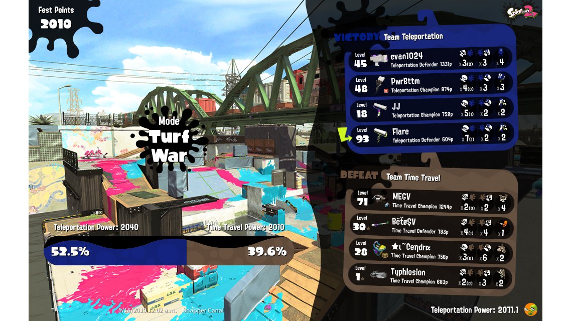 | Splatfest Title | Teleportation Defender 310 → Teleportation Defender 400 | ||||||||||||||||||||||||||||