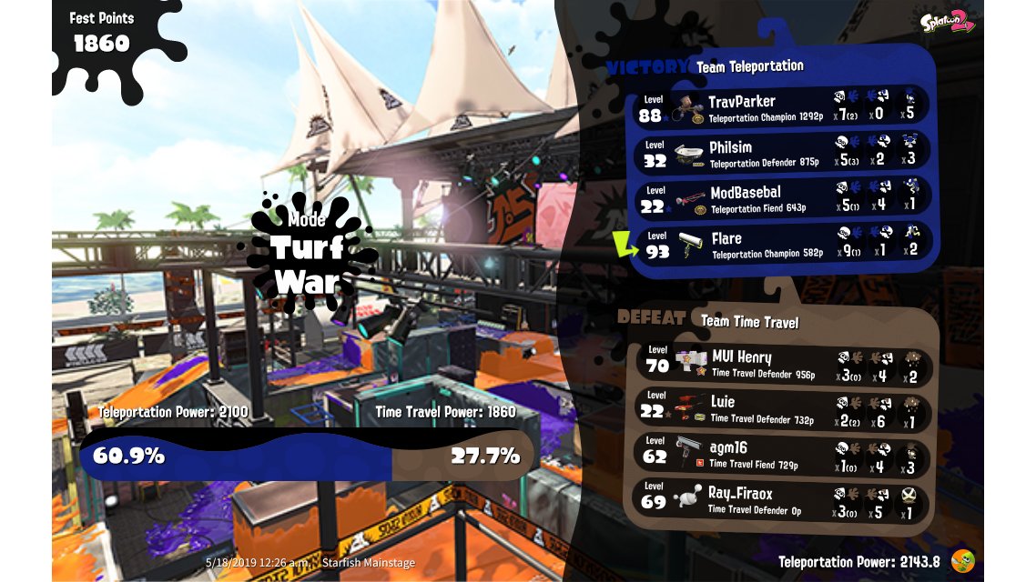 | Splatfest Title | Teleportation Champion 190 → Teleportation Champion 270 | |||||||||||||||||||||||||||||||