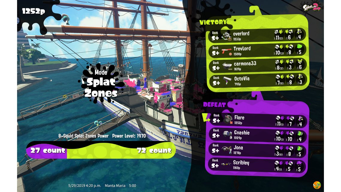 | Mode | Splat Zones - Ranked Battle | ||||||||||||||||||||||||||||||||||