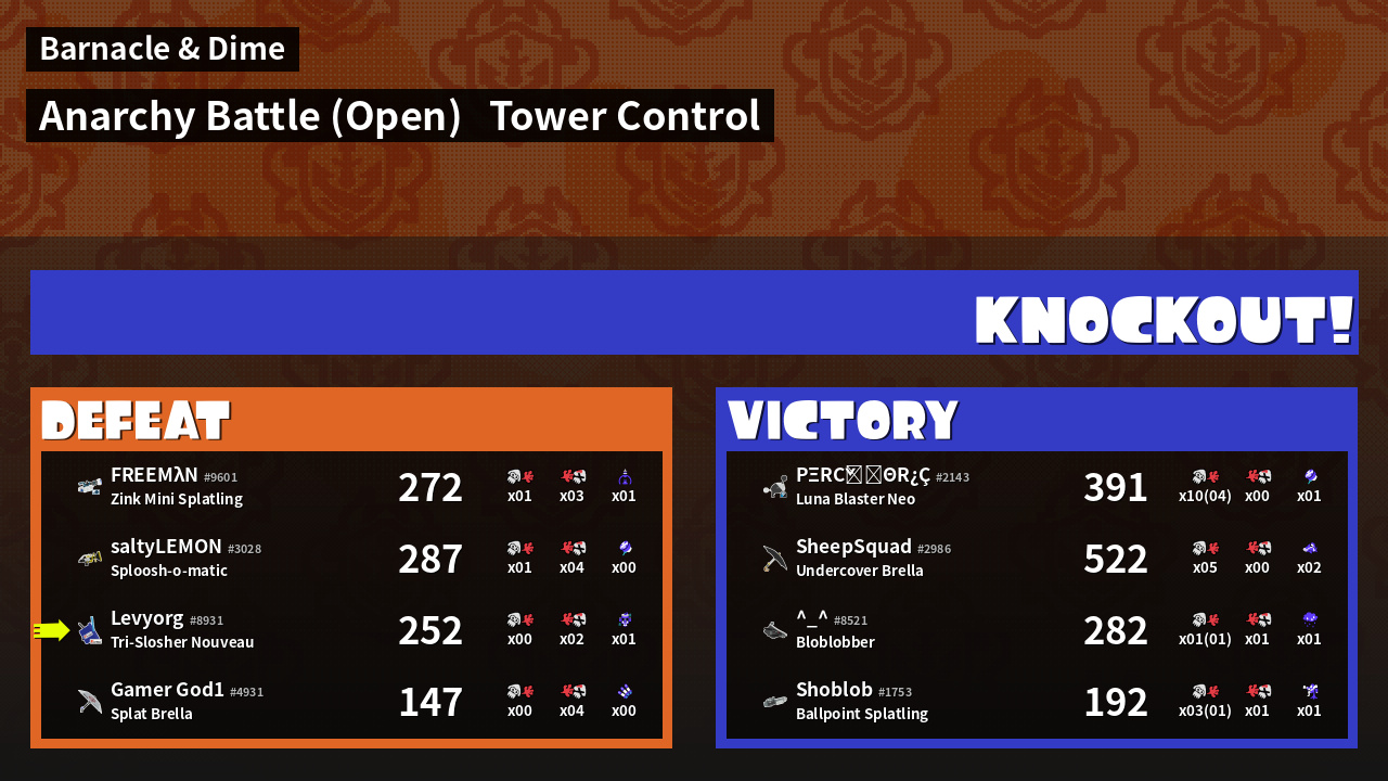 | Zipped-Lips Ordinary Person FREEMλN #9601 |  Zink Mini Splatling                    | 272 | 1 + 0 | 3 | 0.33 |  1 | |