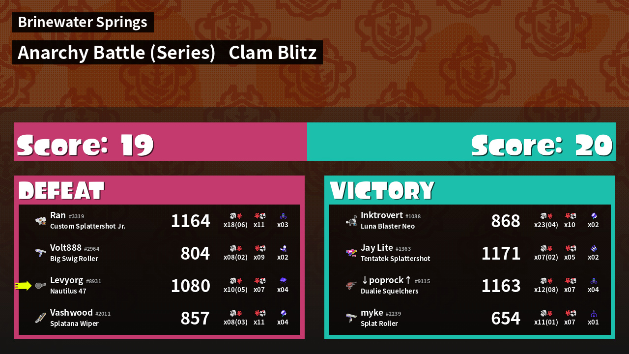 | Mode | Clam Blitz - Anarchy Battle (Series) | ||