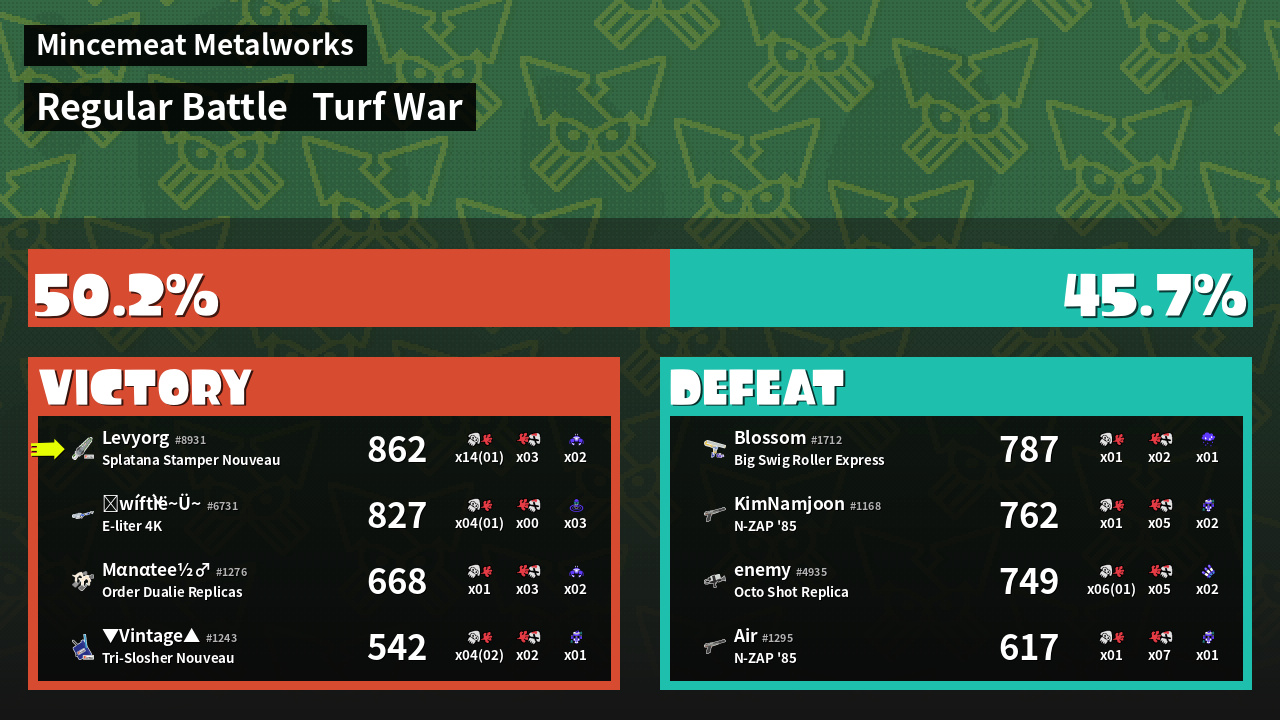 | Mode | Turf War - Regular Battle | ||