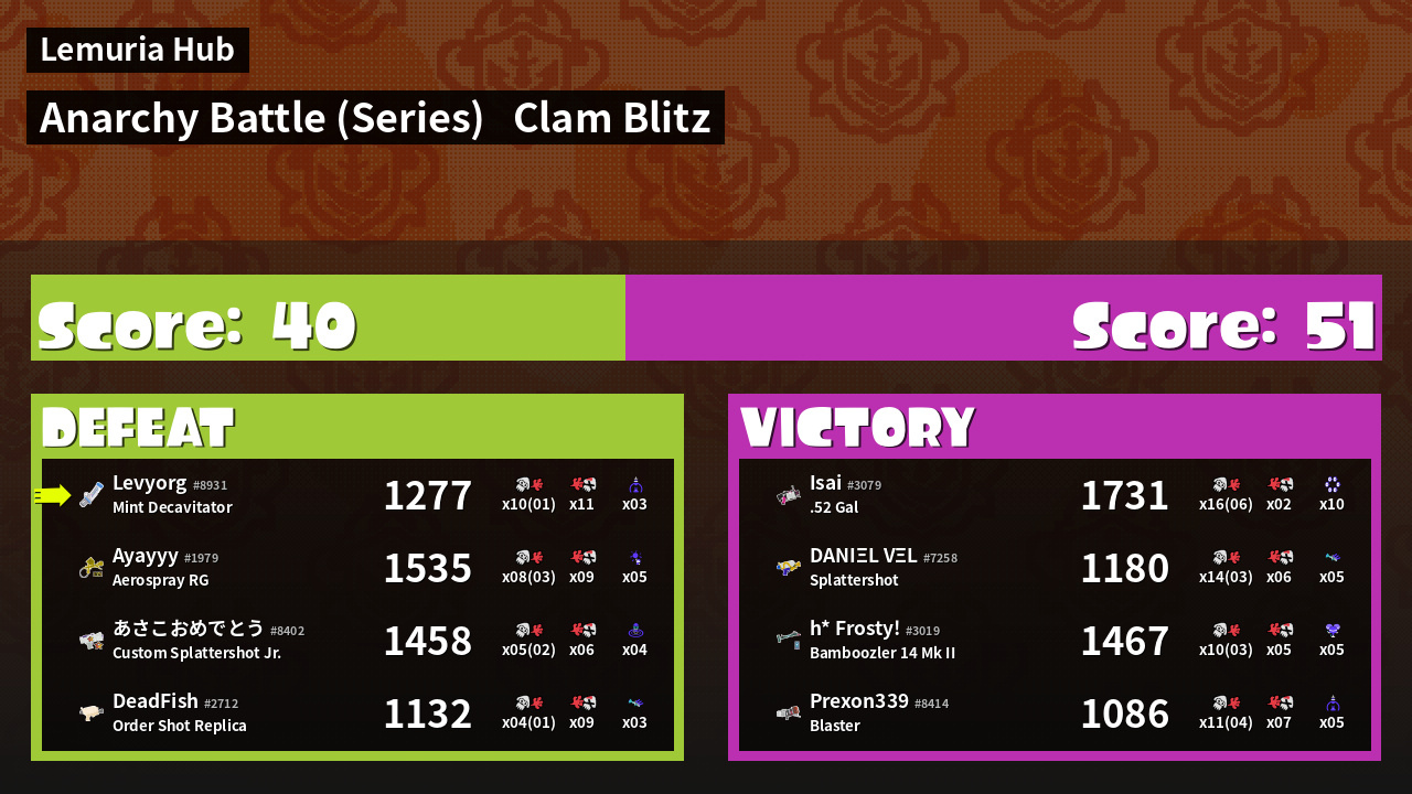 | Mode | Clam Blitz - Anarchy Battle (Series) | ||