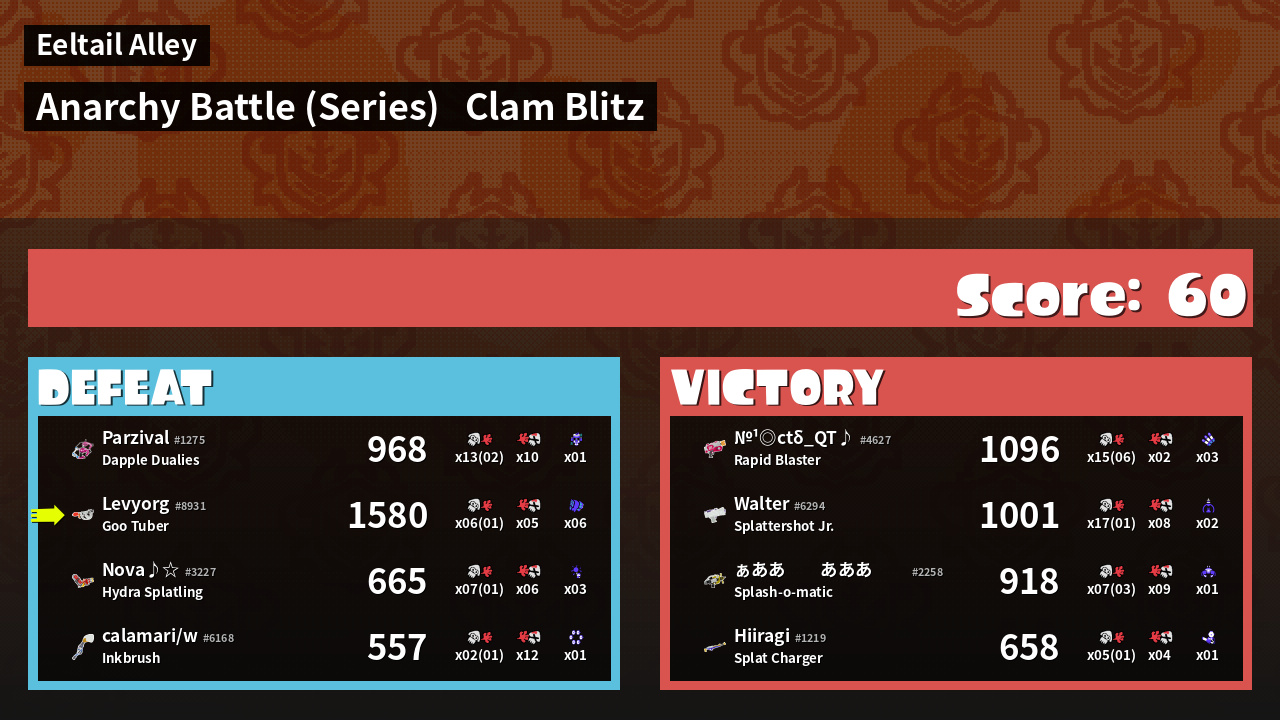 | Mode | Clam Blitz - Anarchy Battle (Series) | ||