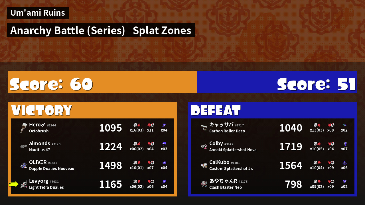 | Mode | Splat Zones - Anarchy Battle (Series) | ||
