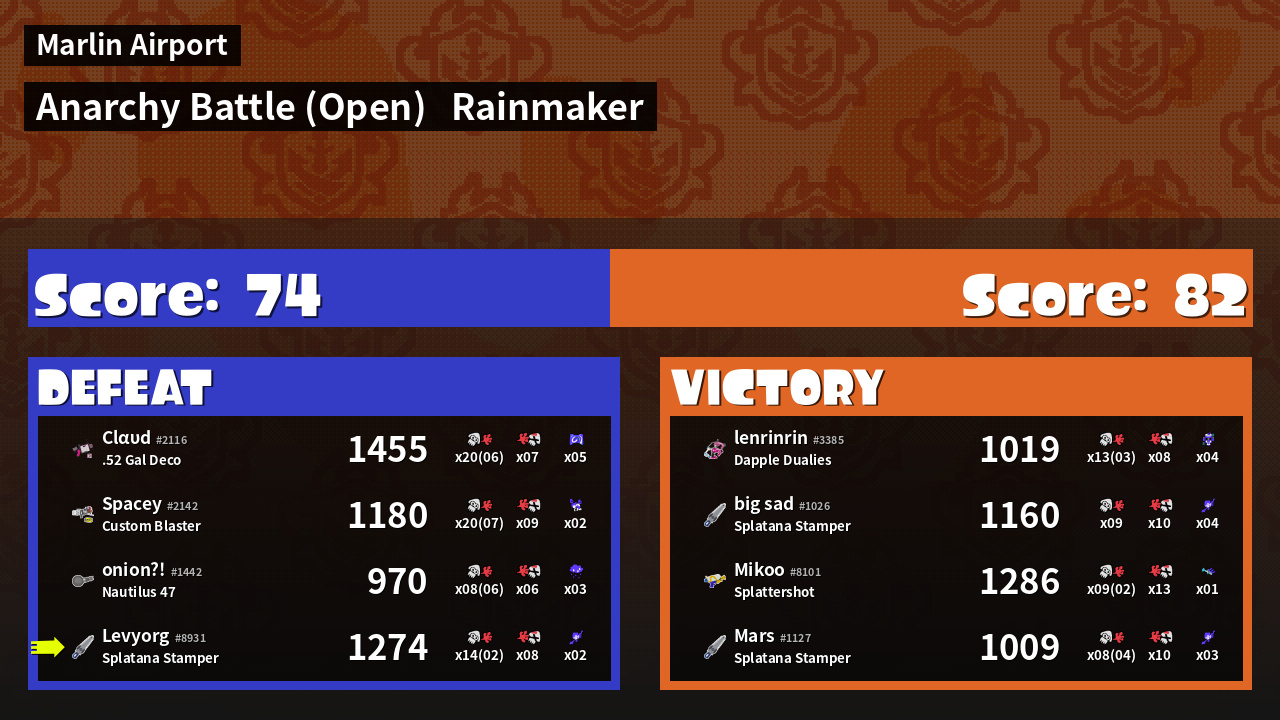 | Mode | Rainmaker - Anarchy Battle (Open) | ||
