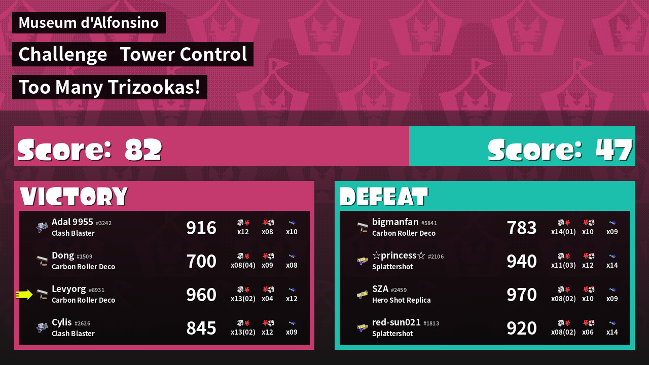 | Medals | #1 Overall Splatter #1 Turf Inker #2 Enemy Splatter | ||