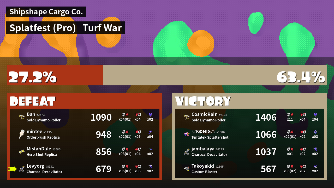 | Medals | #1 Overall Splatter #1 Super Jump Spot #1 Enemy Splatter | ||