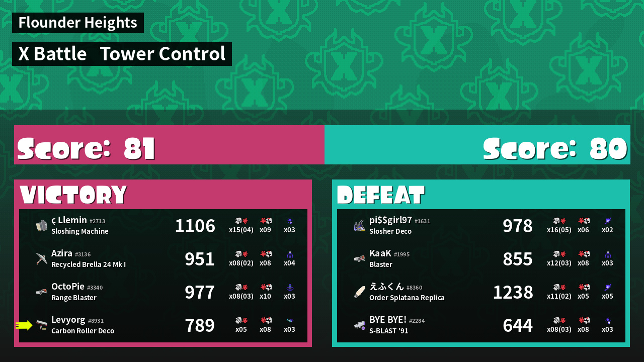 | Mode | Tower Control - X Battle | ||