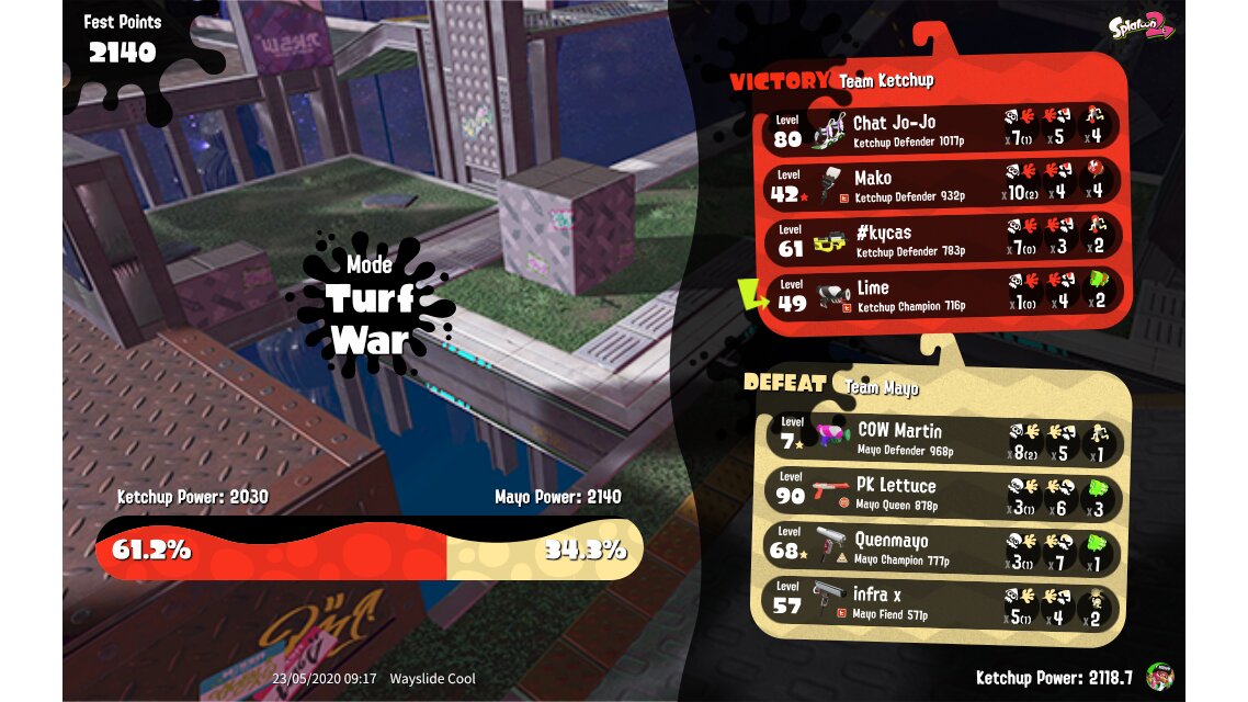 | Mode | Turf War - Splatfest (Pro) | ||||||||||||||||||||||||||||||||||