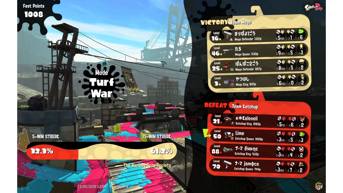 | Mode | Turf War - Splatfest (Normal) | |||||||||||||||||||||||||||||||||||||