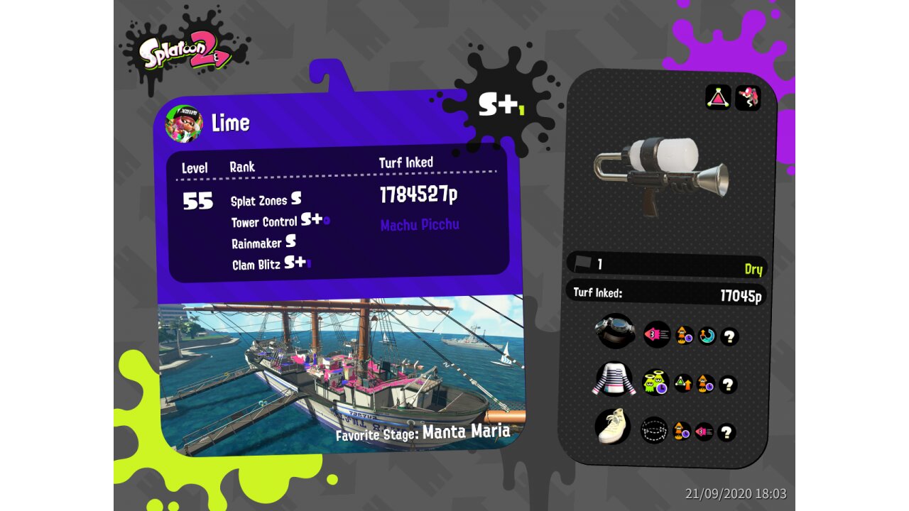 | Name | Weapon | Level | Rank | Inked | k+a/sp | k/d |