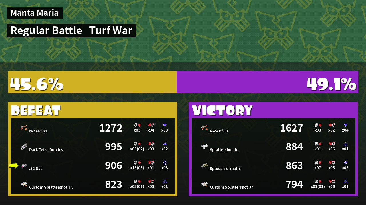 | Medals | #1 Overall Splatter #1 Popular Target #1 Enemy-Base Inker | ||