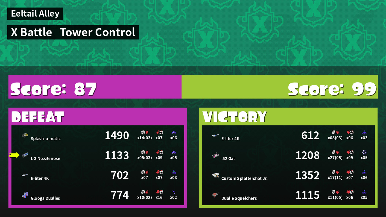 | Medals | #1 Score Booster #1 Super Jump Spot #1 Splat Assister | ||