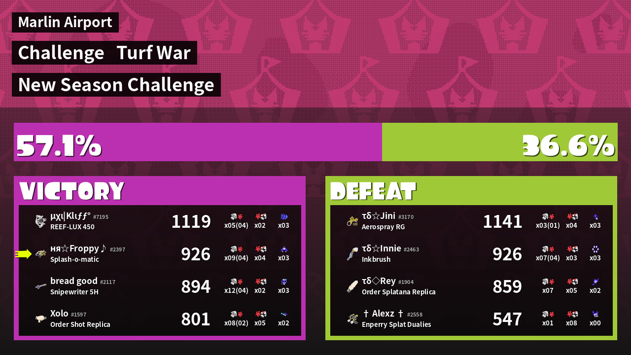 | Medals | #1 Splat Assister First Splat! #1 Crab Tank User | ||