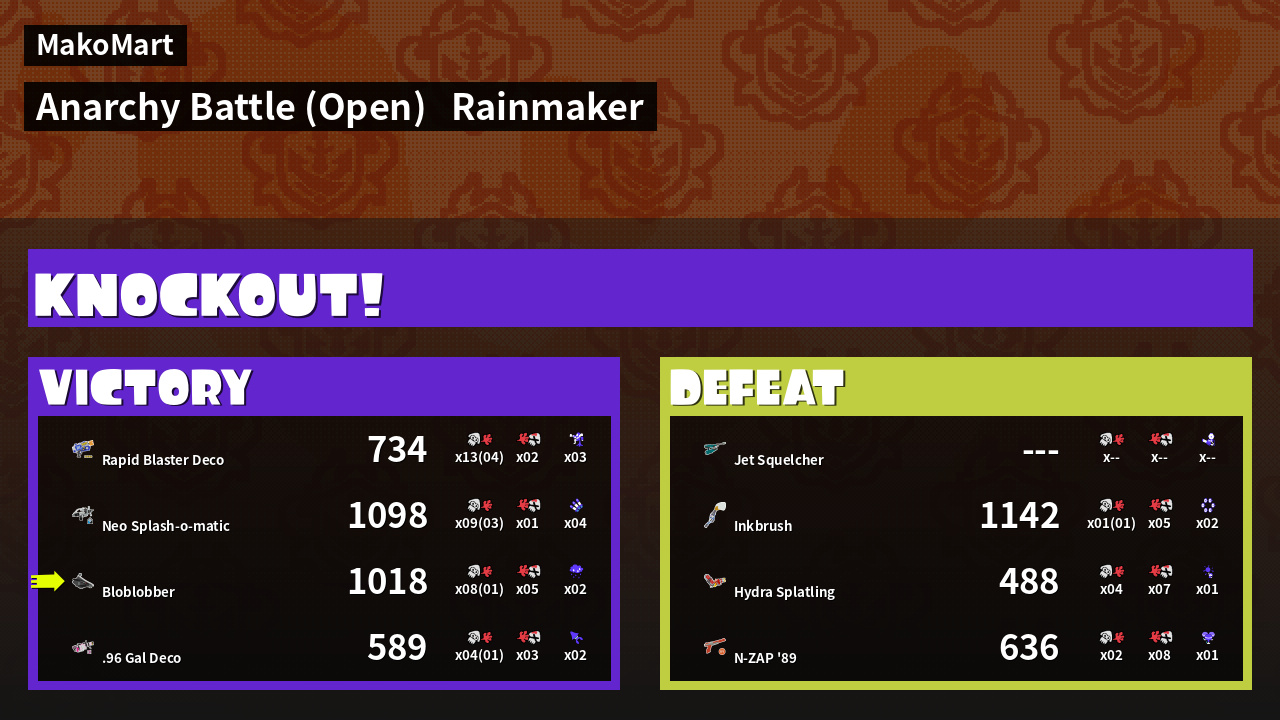 | Mode | Rainmaker - Anarchy Battle (Open) | ||