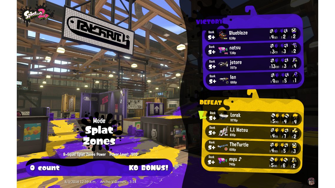 | Mode | Splat Zones - Ranked Battle | ||||||||||||||||||||||||||||