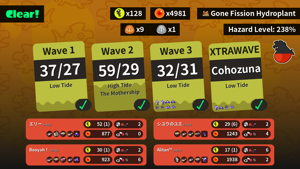 | Boss Salmonid | 15 | 14 | 13 | 24 |