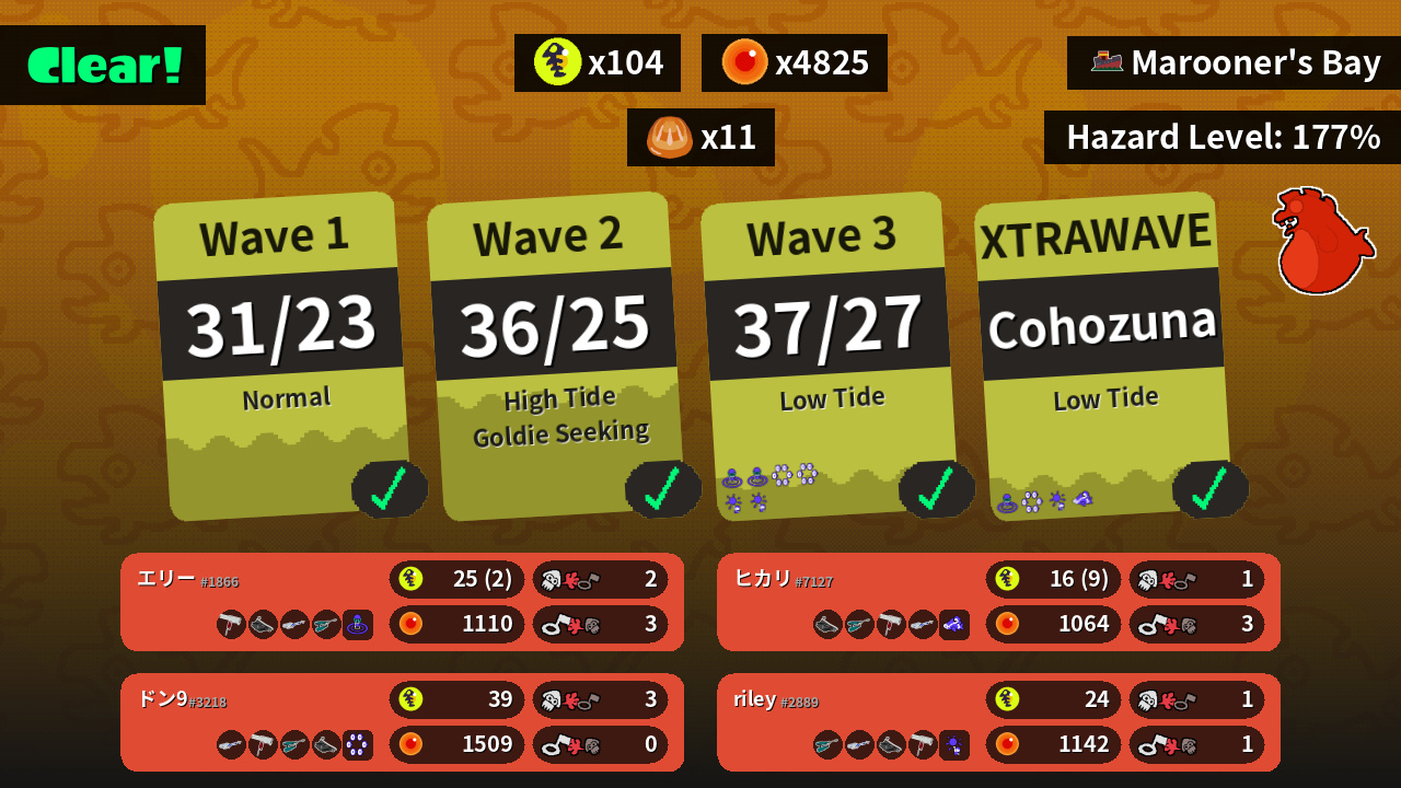 | Boss Salmonid | 13 | 19 | 16 | 7 |