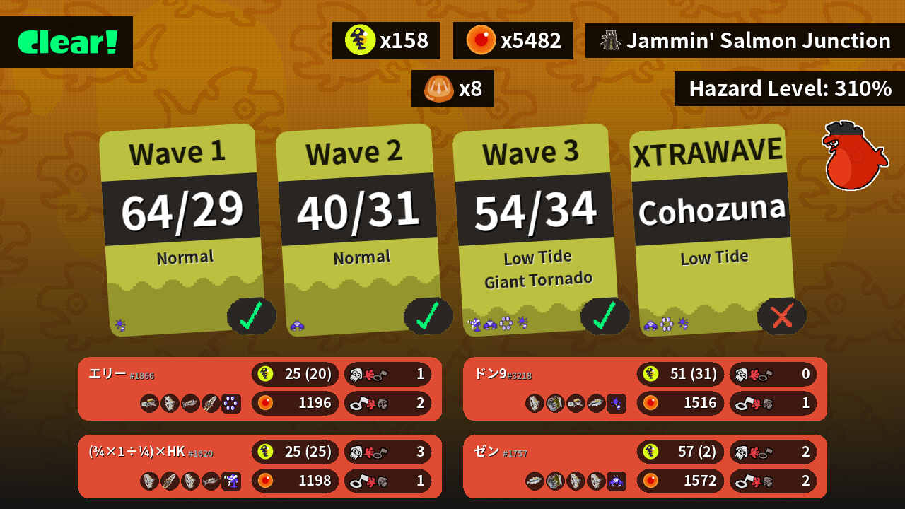 | Weapons | Grizzco Blaster Grizzco Stringer Grizzco Charger Grizzco Splatana | Grizzco Brella Grizzco Slosher Grizzco Stringer Grizzco Stringer | Grizzco Stringer Grizzco Slosher Grizzco Blaster Grizzco Brella | Grizzco Stringer Grizzco Splatana Grizzco Stringer Grizzco Charger |