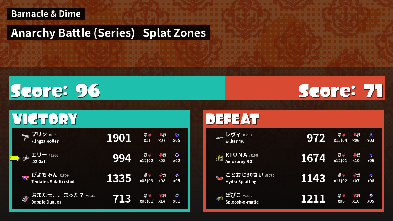 | Mode | Splat Zones - Anarchy Battle (Series) | ||