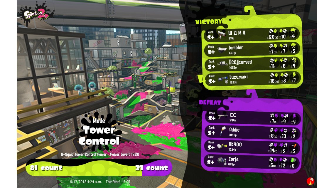 | Mode | Tower Control - Ranked Battle | ||||||||||||||||||||||||||||||||||