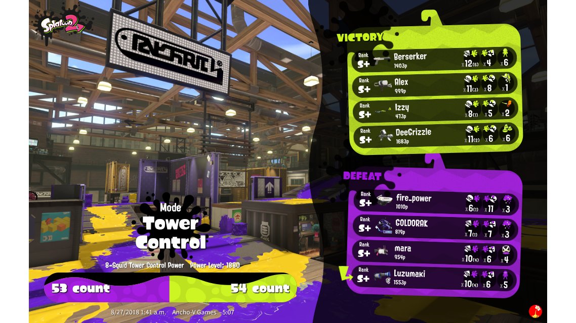 | Mode | Tower Control - Ranked Battle | |||||||||||||||||||||||||||||||