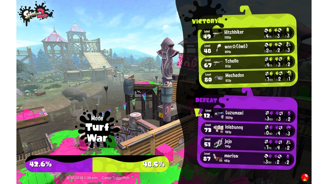 | Mode | Turf War - Regular Battle | |||||||||||||||||||||||||||||||