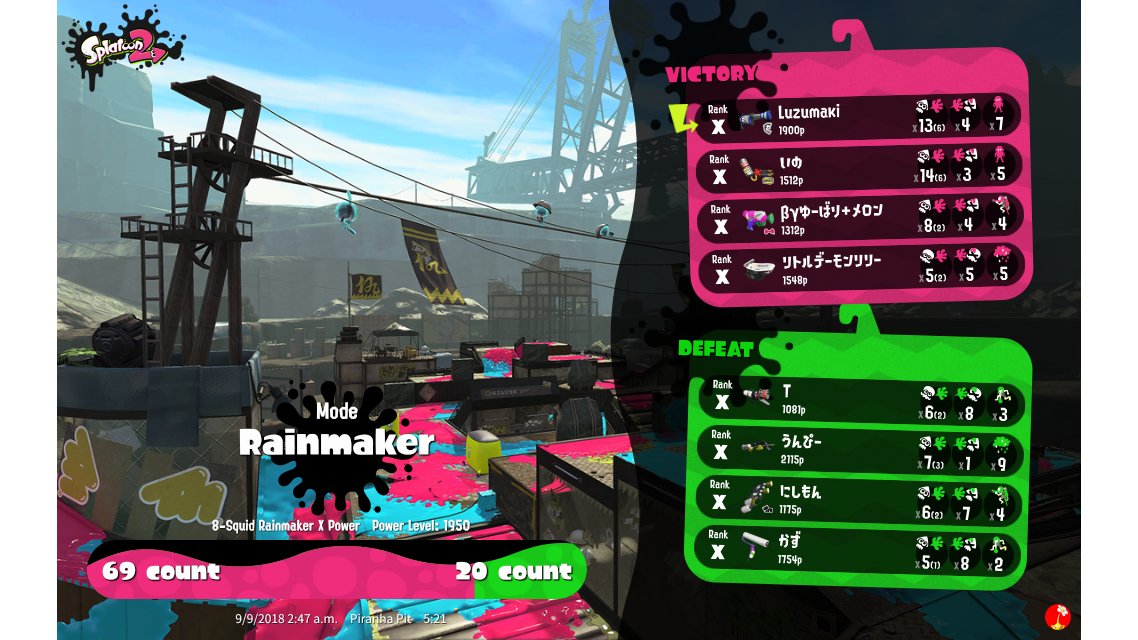 | SplatNet Battle # | 7,461 | |||||||||||||||||||||||||||||||||||||