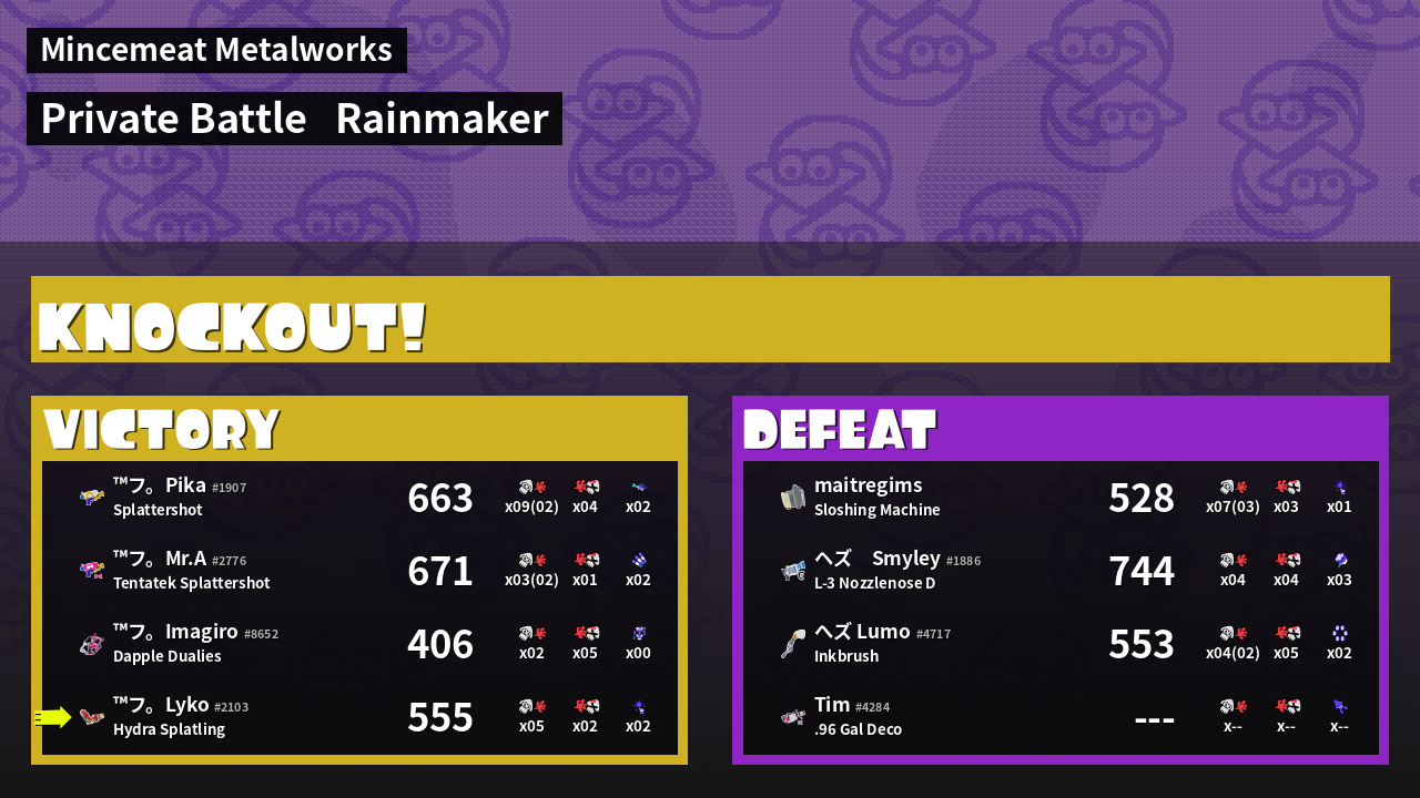 | Medals | #1 Rainmaker Stopper #2 Overall Splatter #2 Score Booster | ||