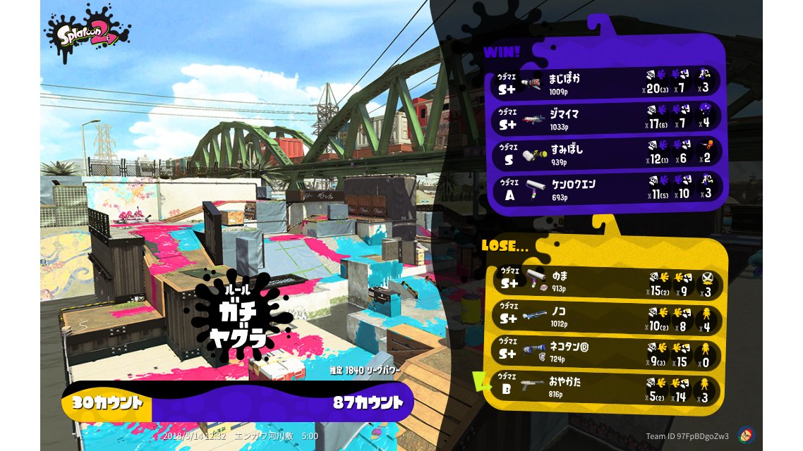 | Name | Weapon | Level | Rank | Inked | k+a/sp | k/d |