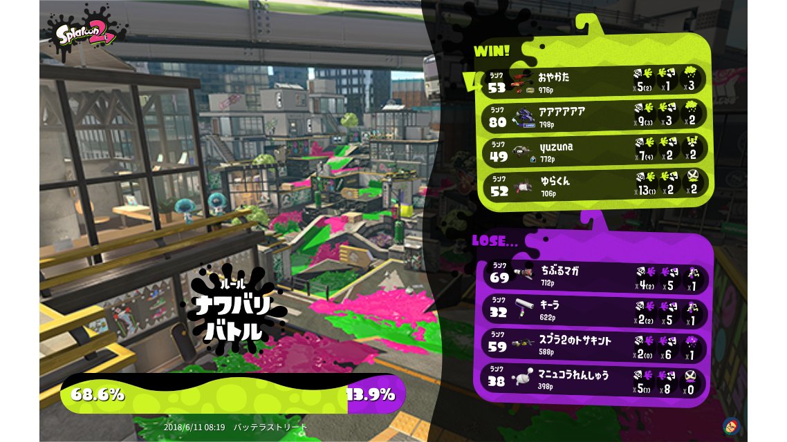 | Mode | Turf War - Regular Battle | ||||||||||||||||||||||||||||
