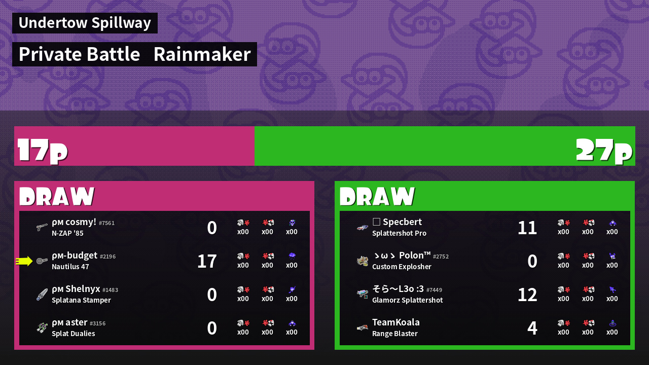 | Weapon | Nautilus 47 ( Point Sensor / Ink Storm) | ||
