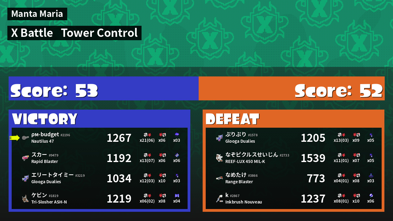 | Mode | Tower Control - X Battle | ||