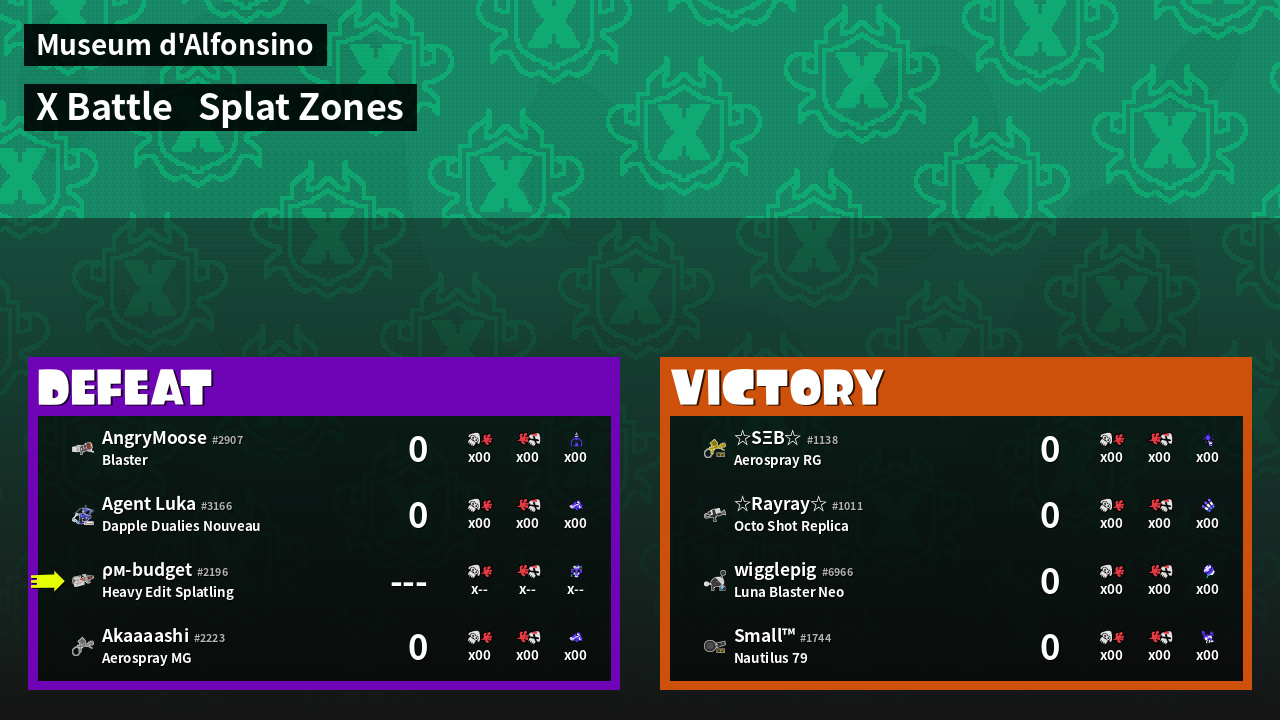 | Mode | Splat Zones - X Battle | ||