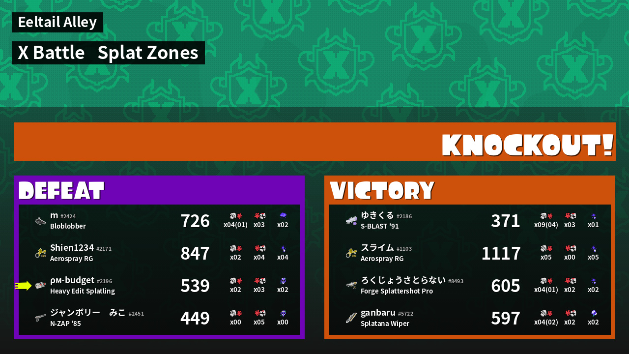 | Mode | Splat Zones - X Battle | ||