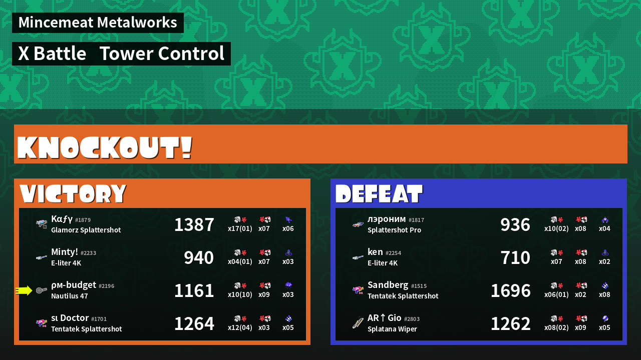 | Medals | #1 Splat Assister #1 Checkpoint Breaker #1 Tower Stopper | ||