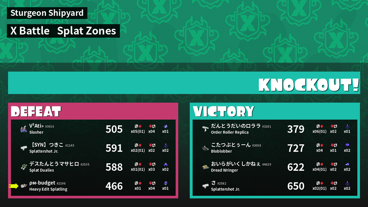 | Mode | Splat Zones - X Battle | ||