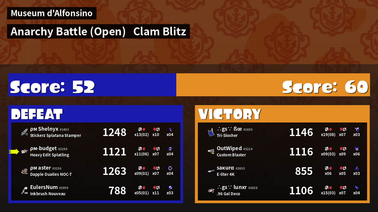 | Mode | Clam Blitz - Anarchy Battle (Open) | ||