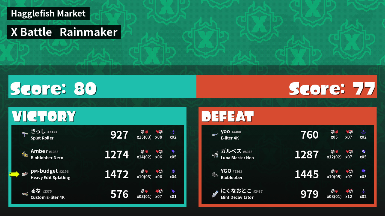 | Mode | Rainmaker - X Battle | ||