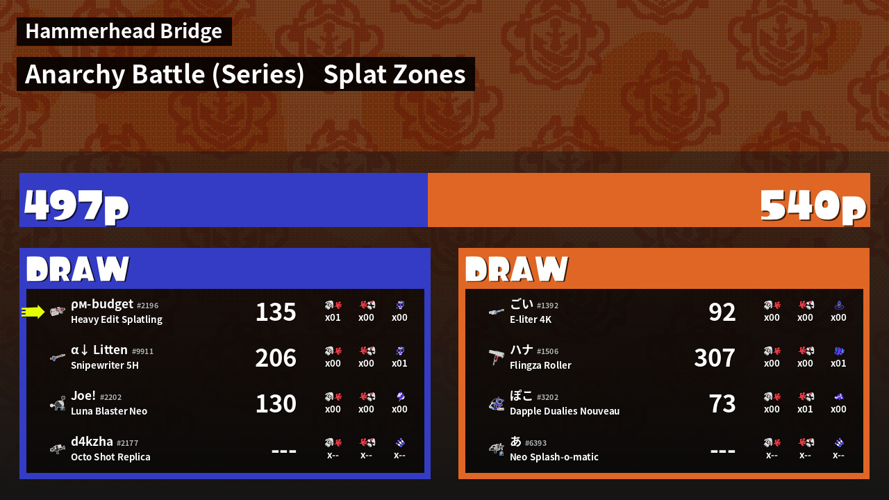 | Mode | Splat Zones - Anarchy Battle (Series) | ||