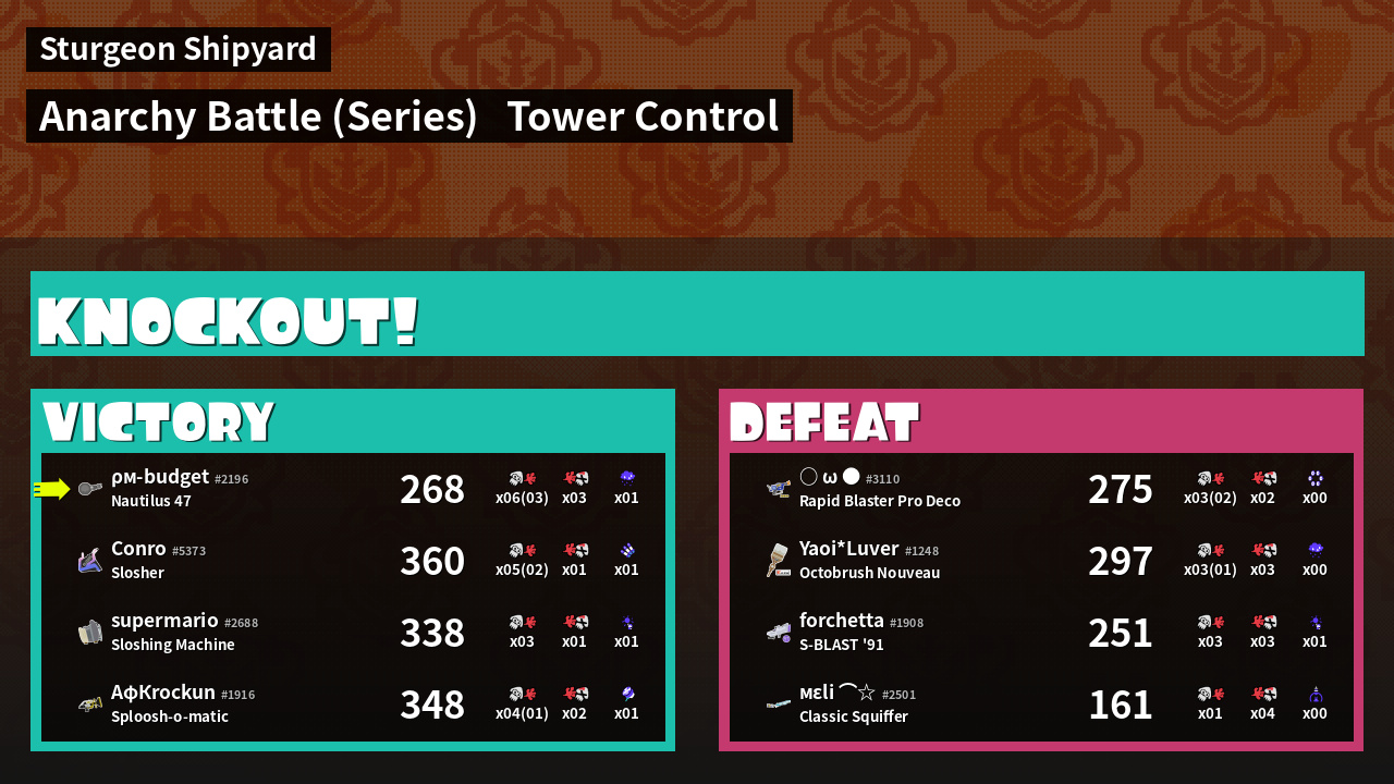 | Medals | #1 Overall Splatter #1 Score Booster Record-Score Setter | ||