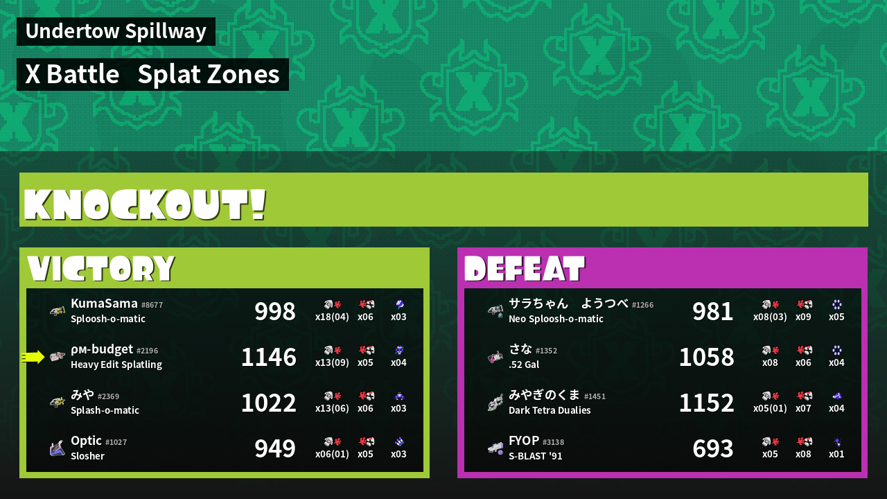 | Weapon | Heavy Edit Splatling ( Curling Bomb / Tacticooler) | ||